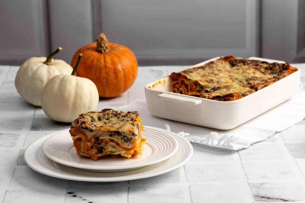Ecco una preparazione completamente vegetale in versione invernale che vede protagonisti funghi e zucca. Questa versione unisce golosità e leggerezza. La crema di zucca mescolata alla besciamella vegetale renderà la preparazione incredibilmente cremosa. Se desiderate, potete acquistare sfoglie di grano saraceno e, prestando attenzione agli ingredienti, creare una versione senza glutine ispirandovi a questa ricetta.