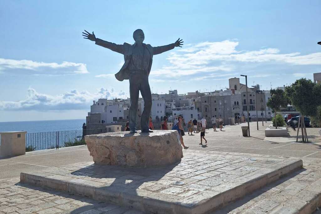 Sostare di fronte a quella figura significa confrontarsi con un capitolo fondamentale della canzone italiana. Modugno è stato un pioniere, un interprete capace di esportare la melodia italiana nel mondo con Nel blu dipinto di blu, trionfando a Sanremo nel 1958 e rivoluzionando definitivamente il linguaggio della musica popolare. E osservando quel blu sconfinato sotto il belvedere, si comprende che certe composizioni non nascono casualmente. Per i più entusiasti, inoltre, suggerisco una passeggiata nel centro con lo sguardo rivolto verso l’alto per cantare seguendo le parole di Volare impresse sulle luminarie.